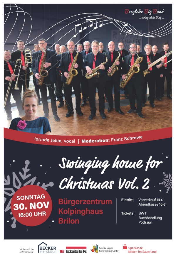 Nach der erfolgreichen Premiere im vergangenen Jahr öffnet sich erneut der Vorhang für das Konzert "Swinging Home for Christmas Vol. 2" im Briloner Kolpinghaus.